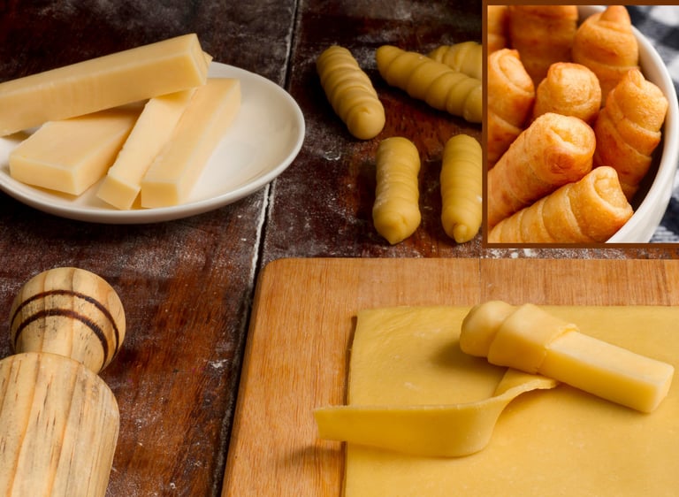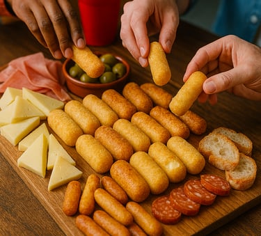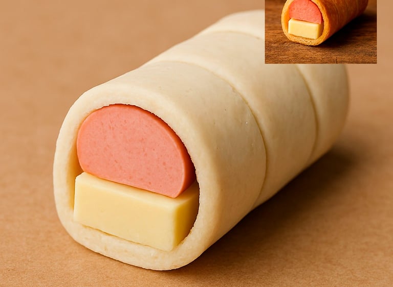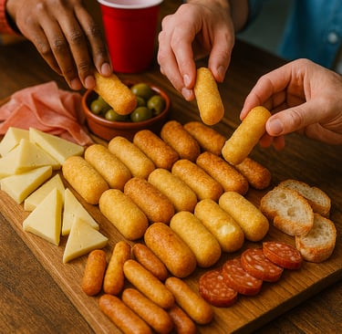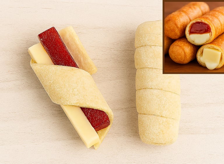 Porque toda picada necesita un toque callejero. Queso, salchicha y masa crujiente: el combo que no se discute.